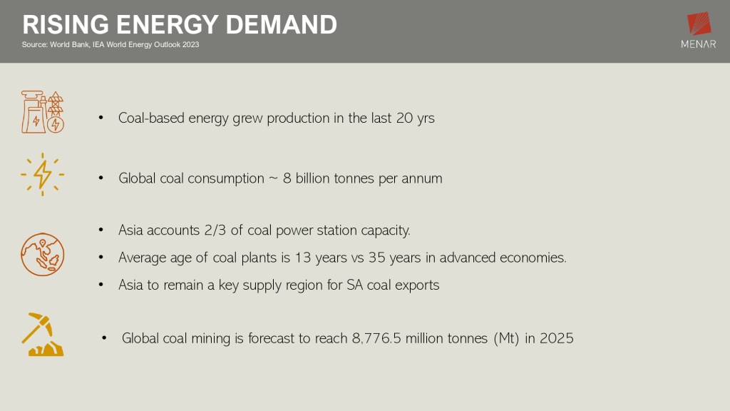 I also mentioned that our slow progress was likely to affect neighbouring countries. Because Eskom is at the heart of the Southern Africa Power Pool system in generation, demand and infrastructure, its problems will impact the region. My topic on how innovative coal use will support global energy security, drew from data that supports a sustained need for coal beyond 2030. Countries like SA with abundant coal resources can benefit from the commodity’s positive attributes. Eskom’s future coal demand is projected to be between 500Mt – 600Mt by 2035.