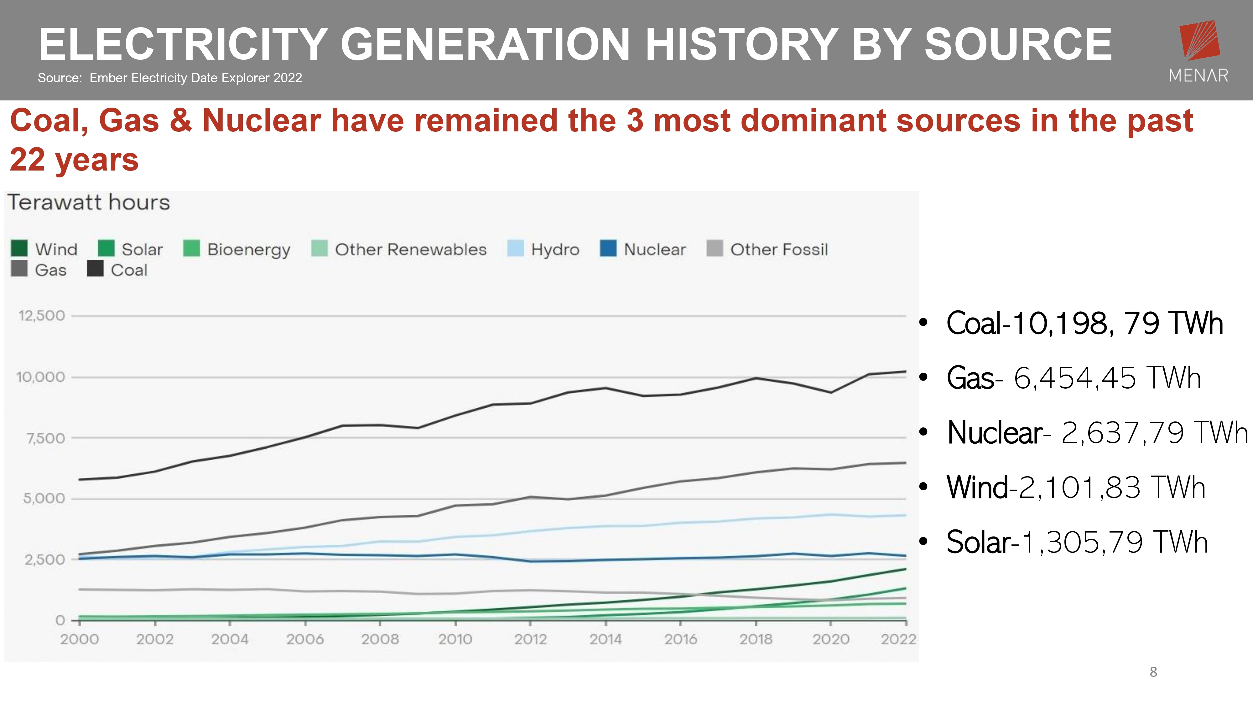 Energy, as we know, is the life force for modern economies that are heavily reliant on electricity. According to data from Ember, coal generated more electricity than any other power source in 2023. Additionally, Statista projects that electricity generation worldwide could exceed 30,000 TWh by the year 2025, reaching 83,000 TWh in 2050.