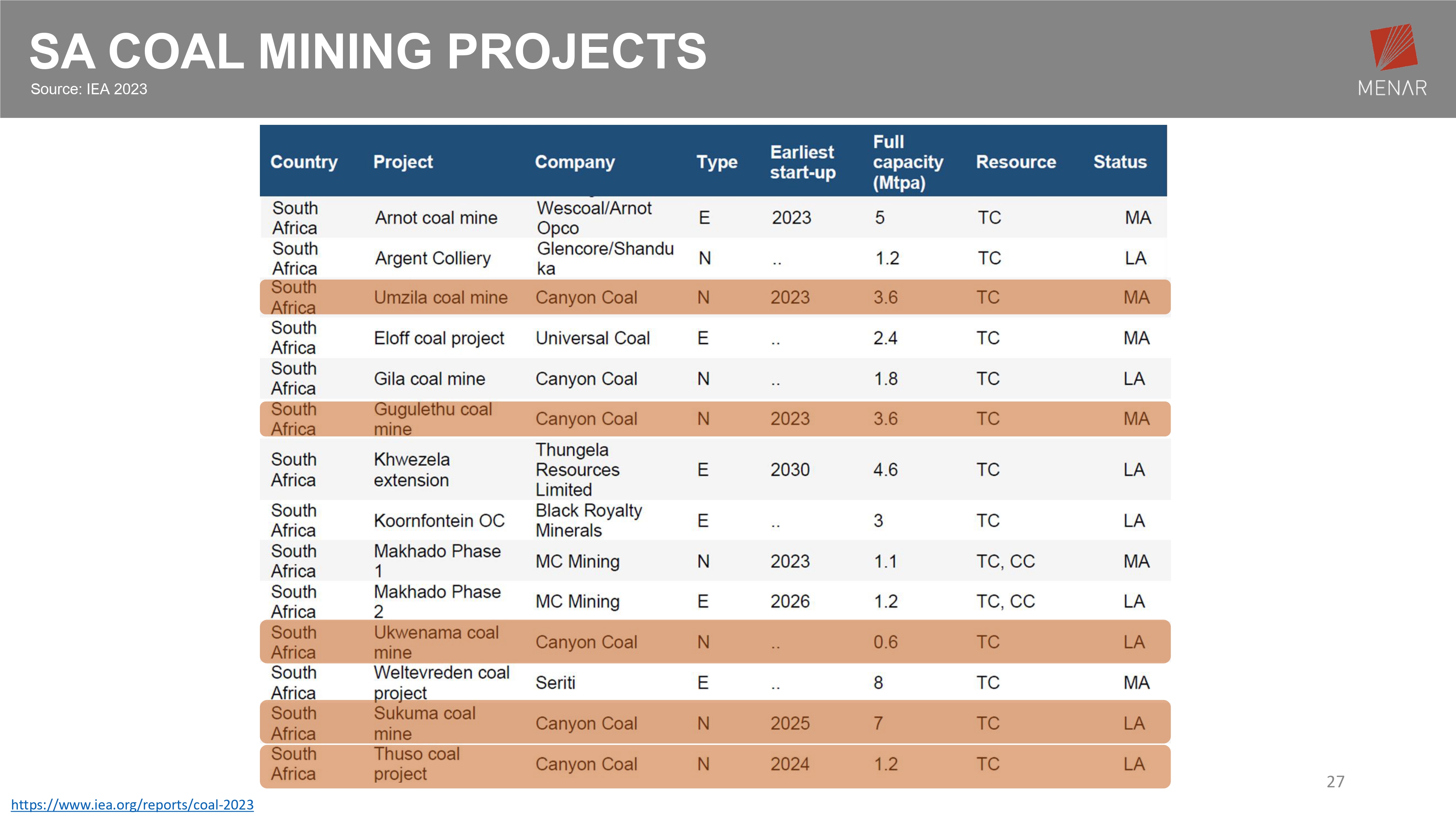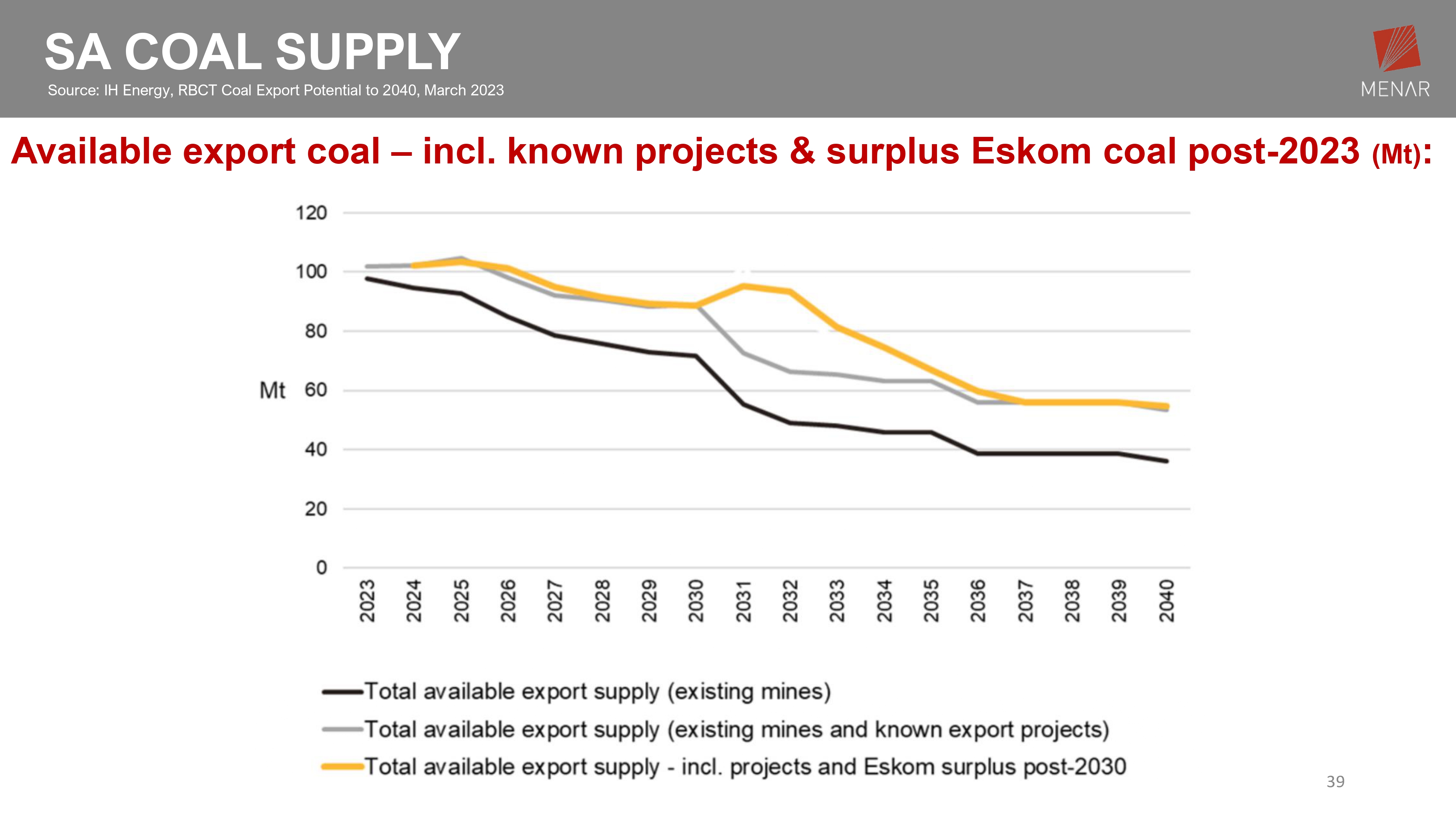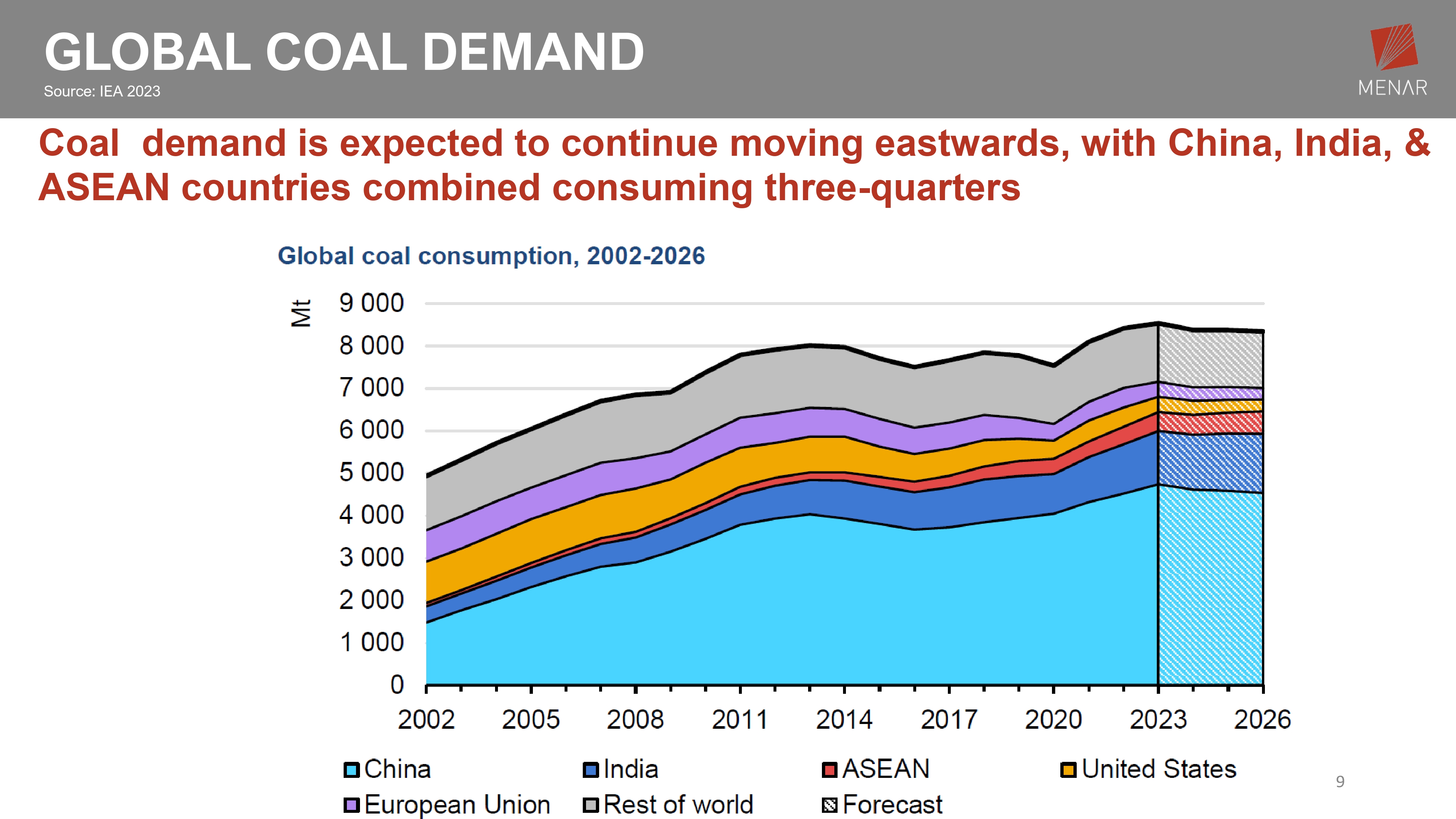 Demand for coal in the West might be decreasing, but it is certainly showing strong growth elsewhere. The International Energy Agency forecasts growth in India and the ASEAN region will offset declines in Europe and the United States between 2024-2026. Asia is also a top destination for South Africa’s coal exports, accounting for more than 80% of the coal leaving our shores. Domestically, SA still relies on coal to supply more than 70% of its energy needs, signifying its importance.