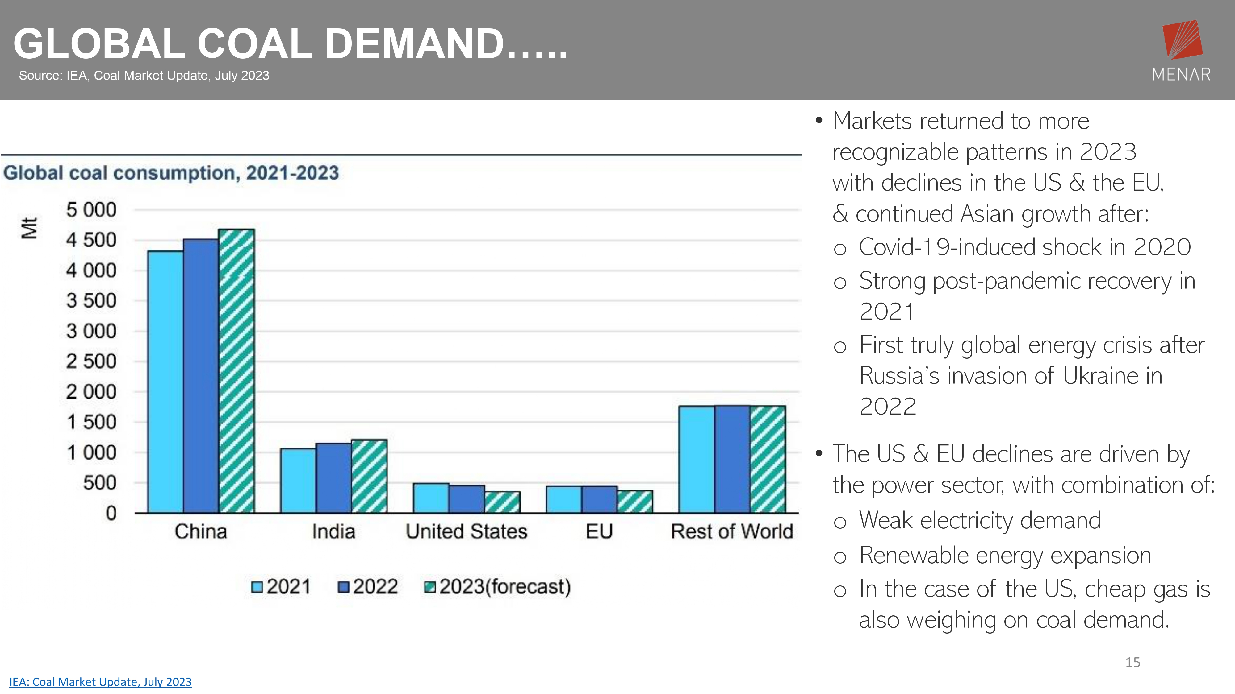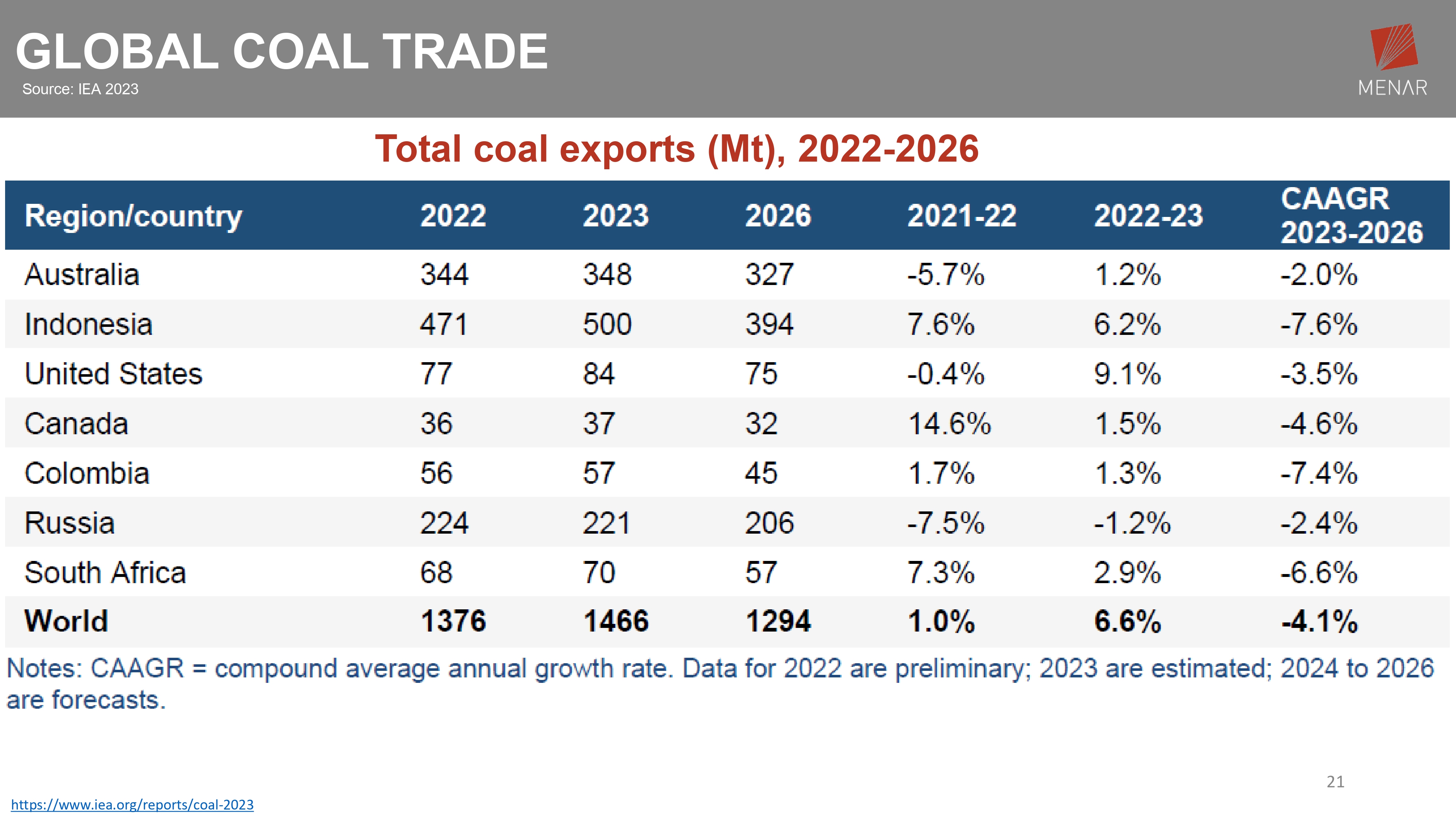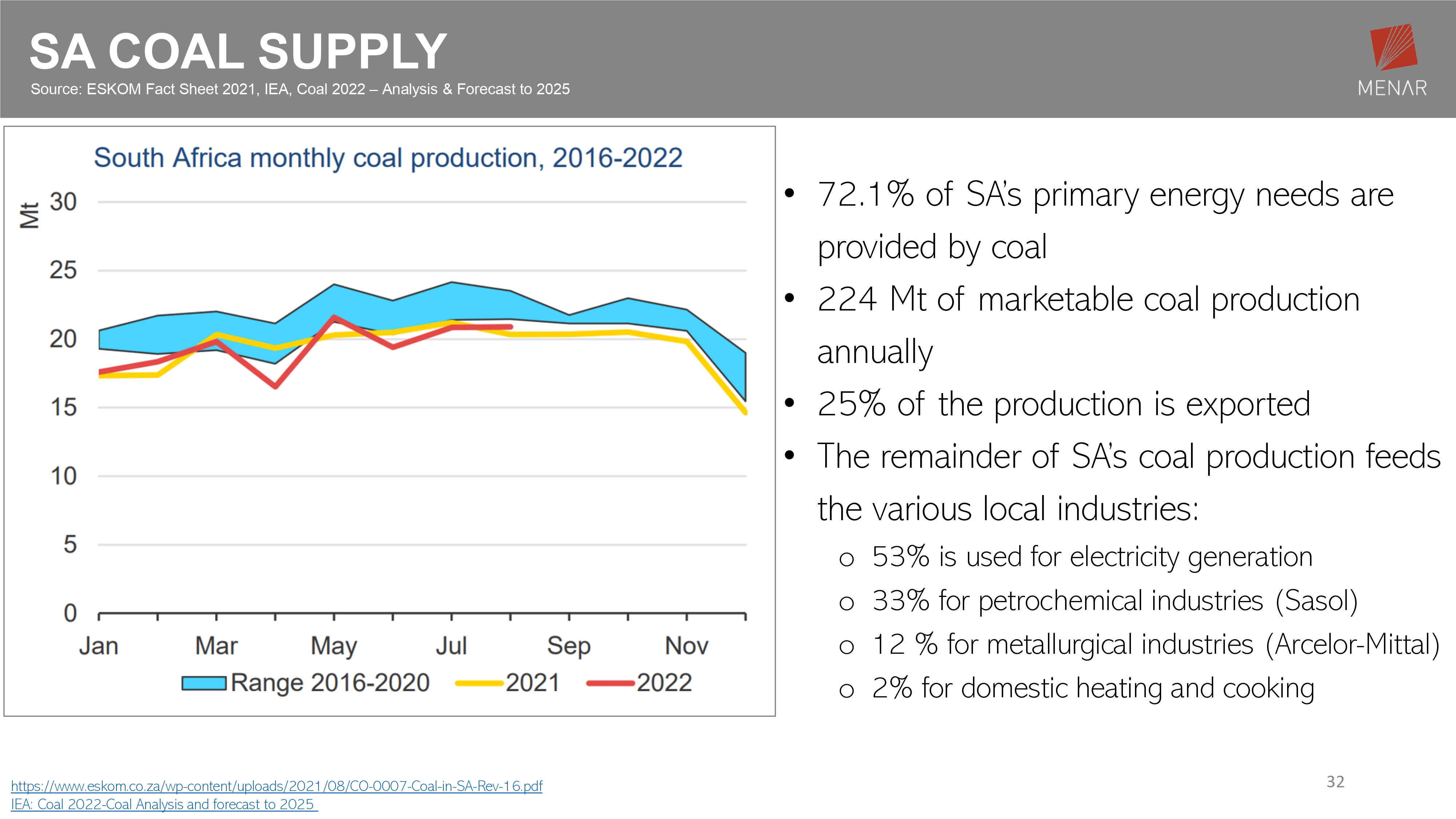 Demand for coal in the West might be decreasing, but it is certainly showing strong growth elsewhere. The International Energy Agency forecasts growth in India and the ASEAN region will offset declines in Europe and the United States between 2024-2026. Asia is also a top destination for South Africa’s coal exports, accounting for more than 80% of the coal leaving our shores. Domestically, SA still relies on coal to supply more than 70% of its energy needs, signifying its importance.