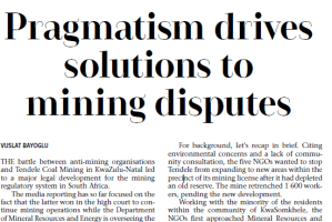 Sunday Tribune | Pragmatism Drives Solutions to Mining Disputes